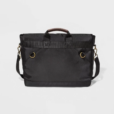 Freshen up your everyday accessory collection with the Messenger Bag from Goodfellow & Co™. This black messenger bag features both interior and exterior pockets as well as a padded laptop pocket, making it perfect to carry with you everyday to the office or while running errands. The flap magnetic closure helps keep your belongings neatly contained, while the detachable strap allows you to customize the look. Designed with an adjustable strap and a top handle, this messenger bag offers convenient carrying wherever you go.