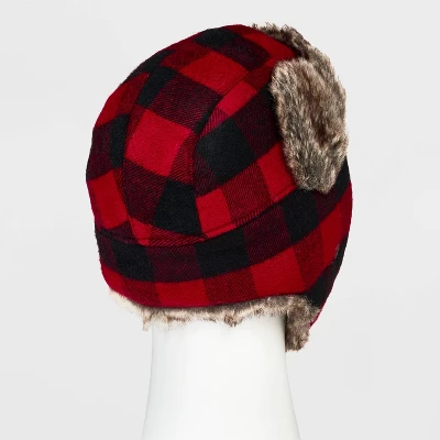 Accessorize your look on cold winter days with this Plaid Faux-Fur Trapper Hat from Goodfellow & Co™. This trapper hat makes a cozy and stylish staple for cool-weather outings and adventures. Designed with fold-up earflaps, it features a black-and-beige plaid pattern for classic flair. The soft faux-fur material on the brim and full interior lining help to keep you super-warm, while the adjustable buckle chinstrap ensures a comfy, secure fit.