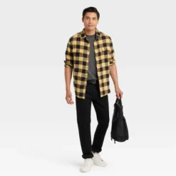 Men's Standard Fit Long Sleeve Checked Collared Button-Down Shirt – Goodfellow & Co™